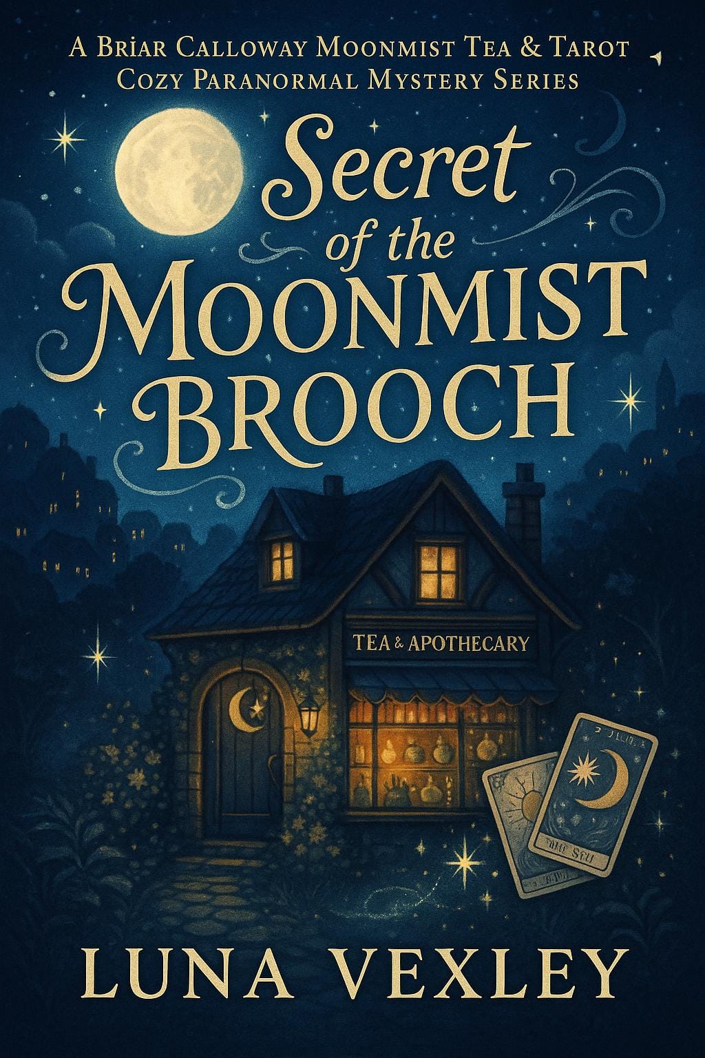 Secret of the Moonmist Brooch — my cozy paranormal mystery series debut, currently on pre-order under my pen name Luna Vexley — turned out to be sitting right at the edge of this emerging genre. The protagonist of this story, Briar Calloway, inherits a tea and apothecary shop, there is a whispering brooch, a raven familiar, and the hidden New England town of Moonmist. The bones were already there.